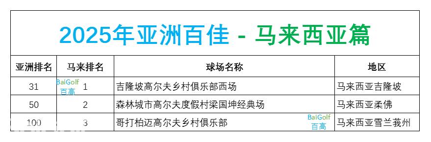 2025亚洲百佳马来西亚篇(附马来西亚球场大全)