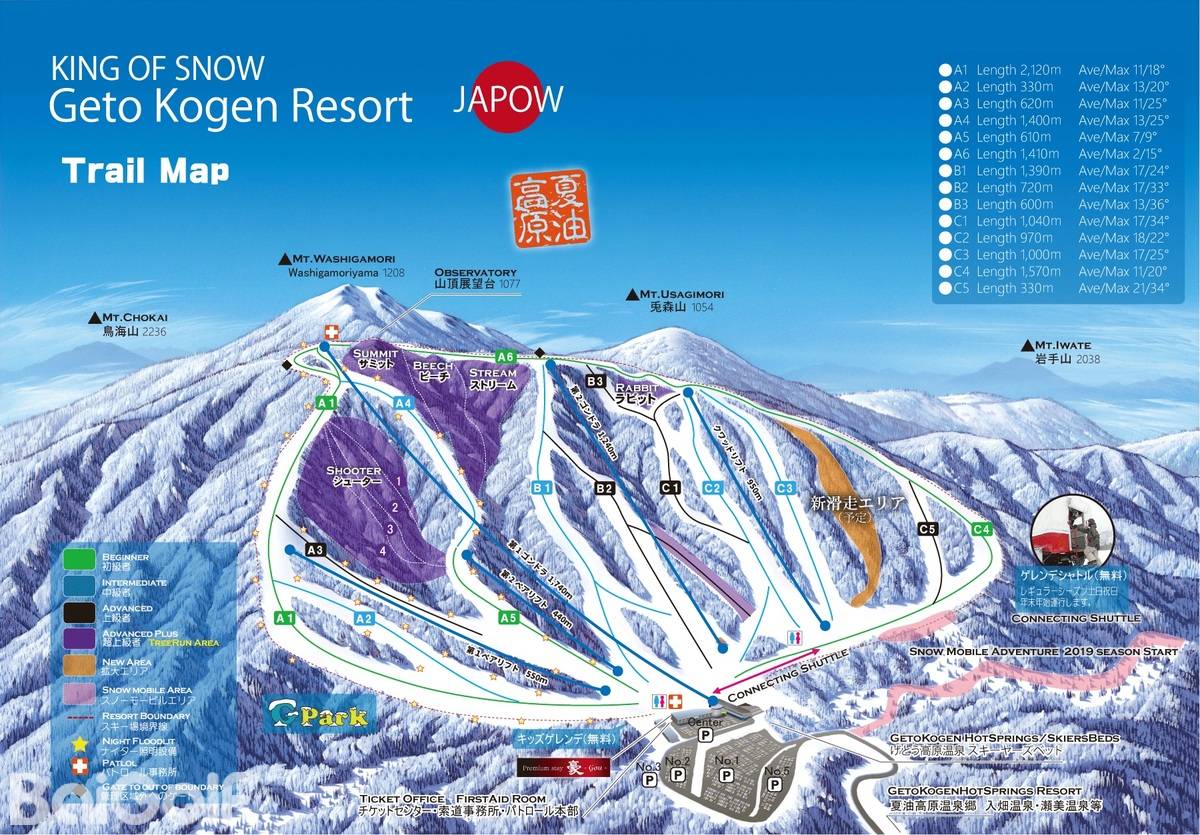One of the best snowfall stats and powder snow in Japan! With its stable snowfall, the resort is usually open from December to May during the Golden Week season. The tree-run area here is one of the largest in the Tohoku region, where you can slide through the trees in unpressurized snow! The regular course has a total run distance of 14,100 meters, and the tree run area is vast. The slopes are laid out to accommodate a wide range of levels from beginners to advanced skiers, including a gentle slope perfect for beginner debuts and a panoramic course with an observatory at the start with views of Mt. Chokai and Mt. Iwate. There is also an inn directly connected to the ski resort and a natural hot spring! From one of the area's best open-air baths, you can see Kitakami City in the distance. A free shuttle bus runs from JR Kitakami Station for easy access!