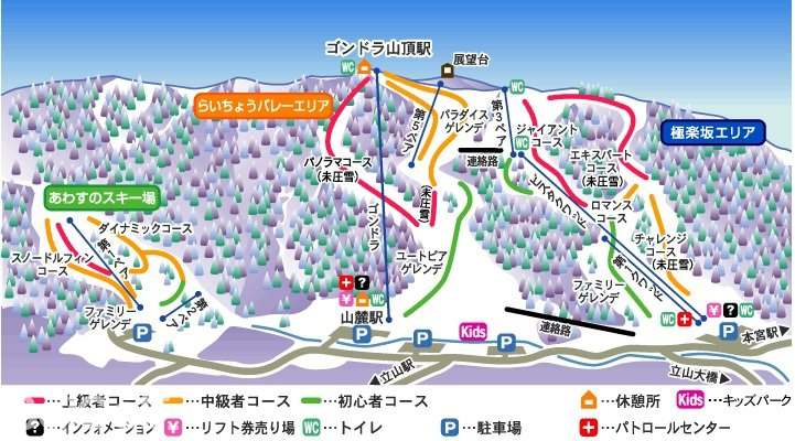 Full of a variety of courses, it can be enjoyed by a wide range of skiers from beginners to advanced skiers. You can also enjoy the panoramic view of beautiful Mt. Tateyama, Toyama Plain, and Toyama Bay.