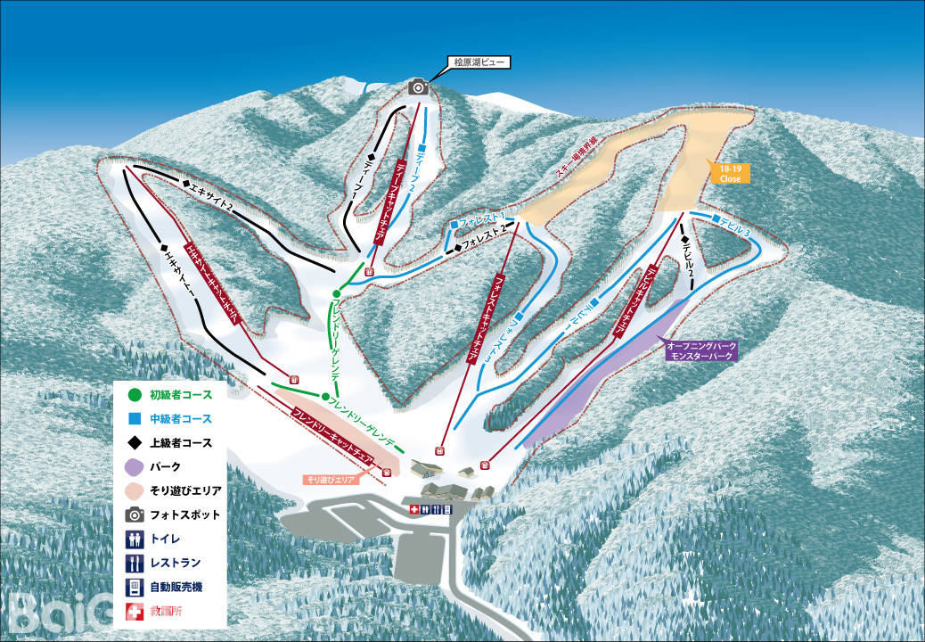 Hoshino Resort Nekoma Mountain (formerly Arutsu Bandai & Nekoma Ski Resort) is a vast resort that straddles the north and south of the mountain. This season, with a connecting lift connecting the north and south areas, it has been reborn as one of the largest ski slopes in Japan with 13 lifts and 33 courses in total. The south area (formerly Arutsu Bandai) overlooks the majestic Mt. Bandai and Inawashiro and enjoys open skiing. The northern area (formerly Nekoma Ski Resort) has light snow, high altitude, and north-facing slopes where you can enjoy a long season of about 5 months until spring. The expressive ski slopes that span north and south can be enjoyed in a variety of ways.