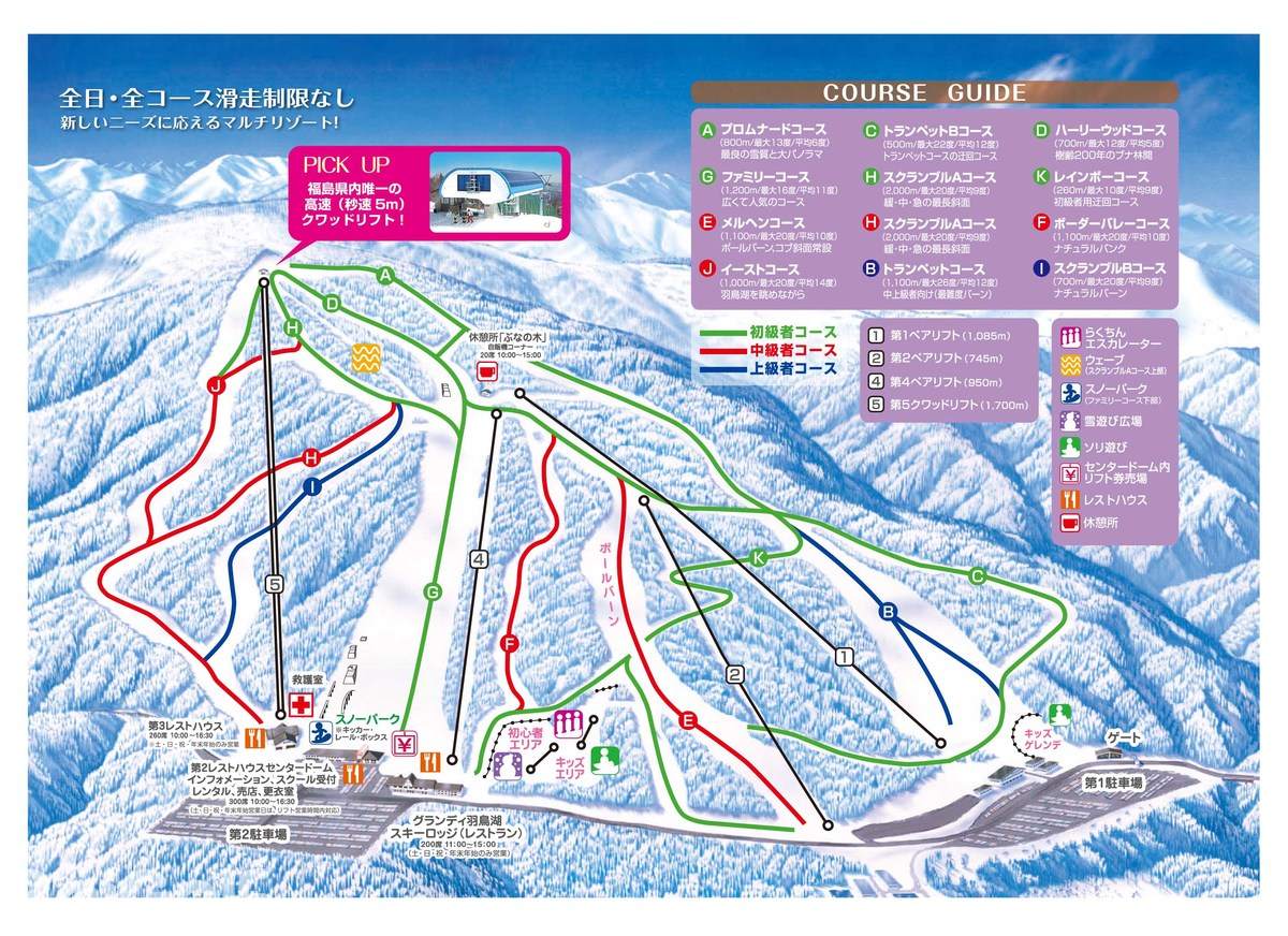 Ride the high-speed lift and reach the panoramic summit in about 5 minutes. From the top of the mountain, you can enjoy a long run of 2,000m. There are plenty of courses for beginners, making it perfect for people who want to start skiing and snowboarding, as well as families.