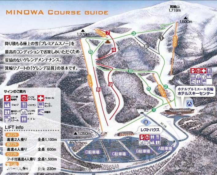Early opening is possible due to the base area's high altitude of 1,050m. The ski slope takes advantage of the top altitude of 1,500m, and is covered with an abundance of high-quality "premium snow." There are a variety of slopes that everyone from beginners to experts can enjoy, including a powder area, a park zone, and a course where even beginners can ski from the top area. Equipped with an artificial snow machine, you can enjoy stable skiing even in mild winters. There is also a hotel on the slopes, so after skiing you can enjoy the view from the hotel window, or relax in the public bath or ion therapy.