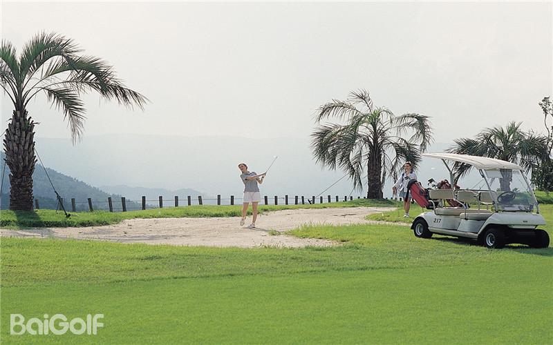 白山乡村高尔夫俱乐部—拥有36洞COURSE球场。 KING(IN・OUT)QUEEN (IN・OUT), 4个CURSE各有其趣,富有变化的战略性风格,配置在不同的景色250万平方公里的广大面积内。设计师铃木正一巧妙利用地形原貌,球道顺着山势由高往下走,创造了三十六洞的球场。地势较低的皇后和王子,当初施工时还使用过炸药,为了就是要打造出皇后随伺在国王旁的温柔婉约,球道环抱着杜鹃花酒店、凤凰城堡、独立小木屋,以及村内的主要设备,风格迥异于国王和皇家的十八洞,让打球人员任意挥洒,享受高尔夫的醍醐味。
