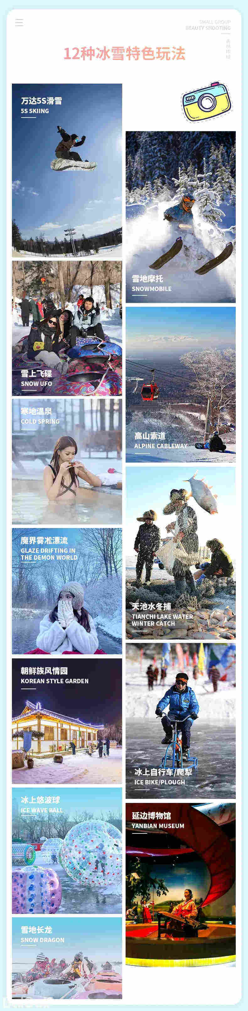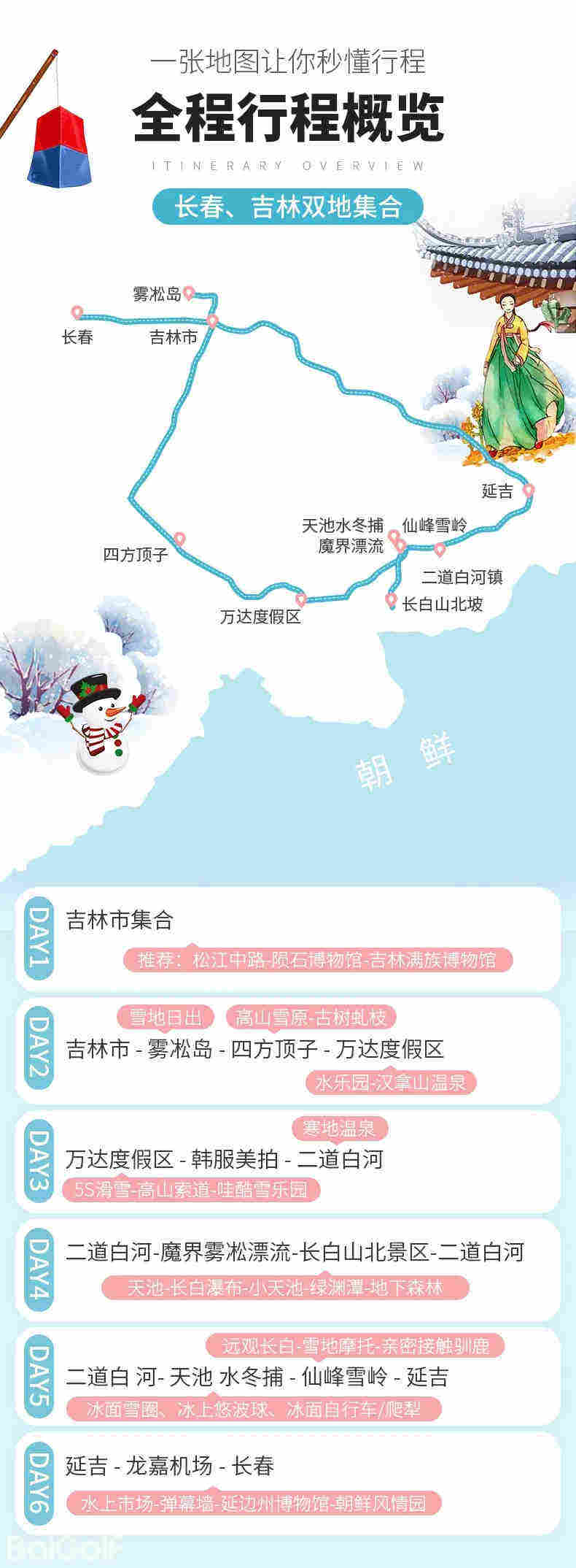 二道白河-天池水冬捕(冰面雪圈、冰上悠波球、冰上自行车/爬犁)-仙峰雪岭(远观长白-雪地摩托-亲密接触驯鹿 )-延吉