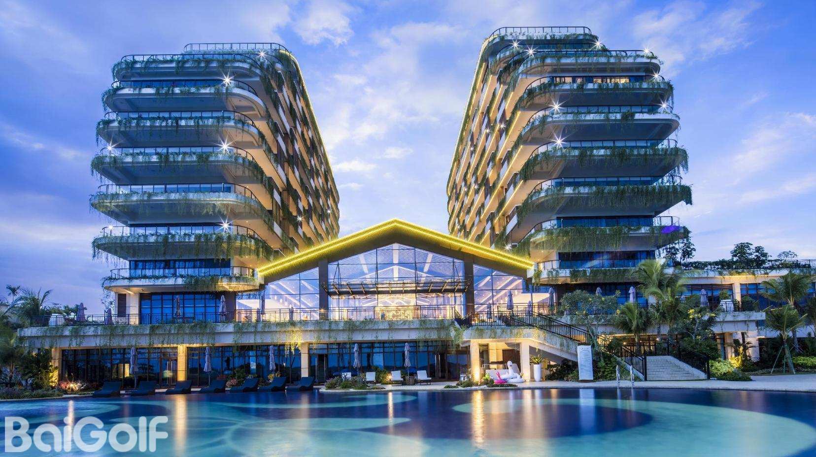 森林城市凤凰国际高尔夫酒店位于世界第二大红树林中央,距离森林城市海之贝 5 公里, 与之配套建设还有:三座国际高尔夫球场、度假别墅区、红树林公园、游艇码头、风情 商业街等,高尔夫酒店塑造了森林城市高端生活的新名片。 两个外八字客房塔楼与三大高尔夫球场相互呼应,形成 360°看景,视线无遮挡,所有客 房看景,最大限度利用景观面,将高尔夫景尽收眼底。