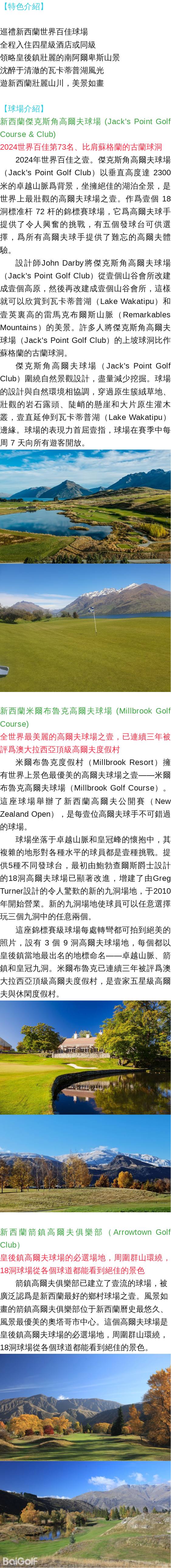 1、平日3場18洞果嶺:新西蘭傑克斯角高爾夫球場,新西蘭米爾布魯克高爾夫球場,新西蘭箭鎮高爾夫俱樂部