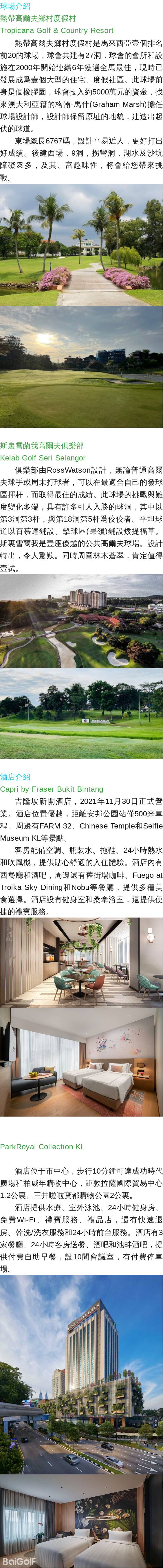 熱帶高爾夫+斯裏雪蘭我,馬來西亞吉隆坡+雪蘭我高球之旅(3天2晚2球)