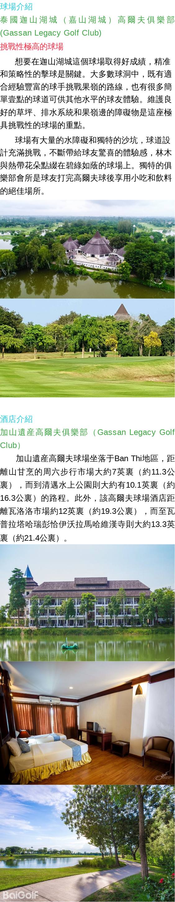 迦山湖城Gassan Legacy1晚1球【入住球會酒店】