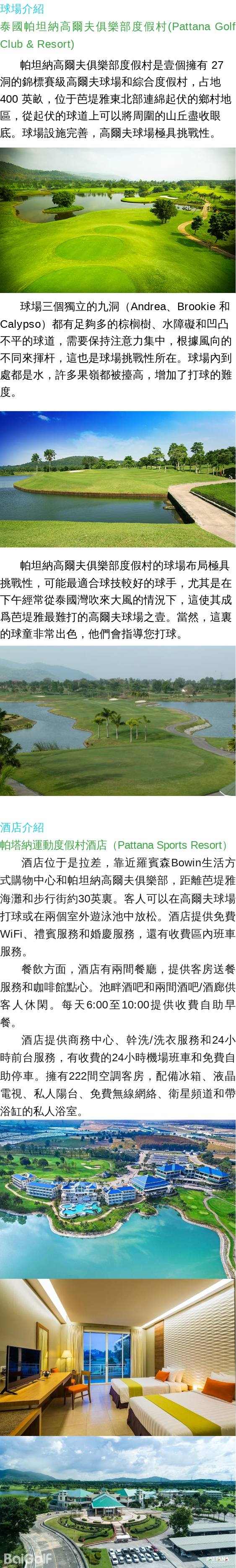 帕坦納Pattana Golf1晚2球【入住球會酒店】