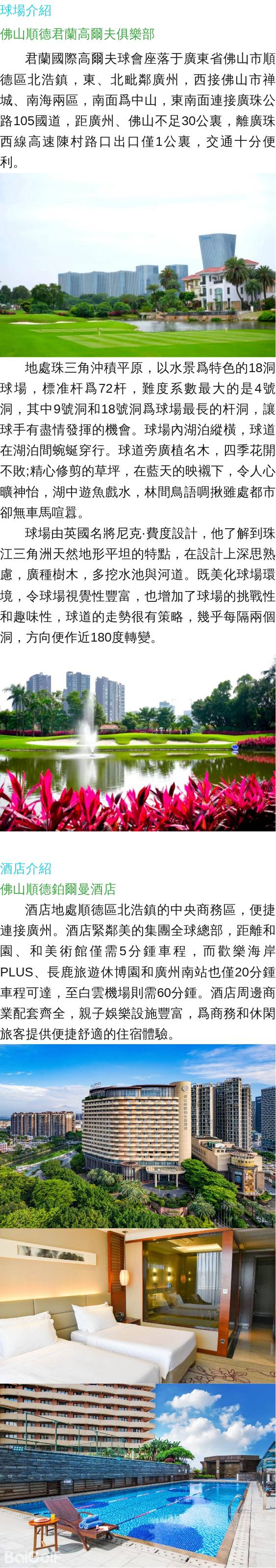 嶺南水鄉-佛山君蘭1晚1球【入住鉑爾曼酒店】