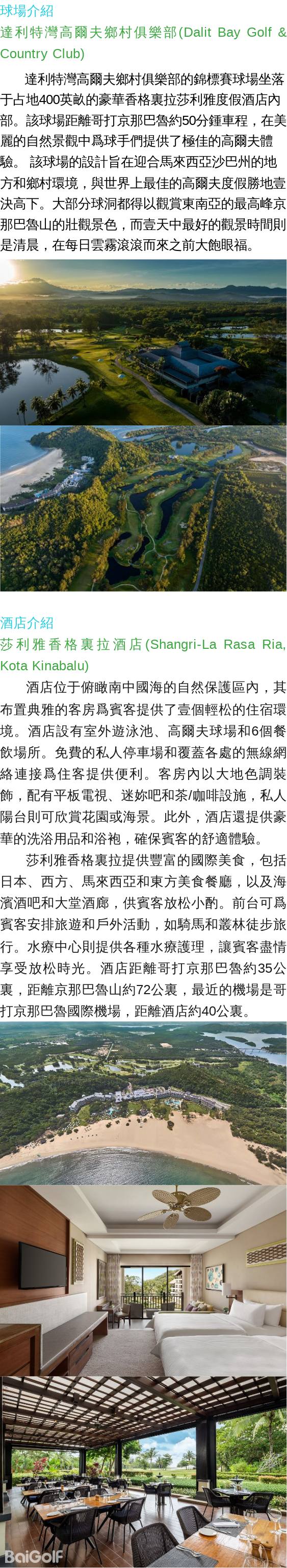 達立灣Dalit Bay【入住香格裏拉】3晚1球*含早晚*