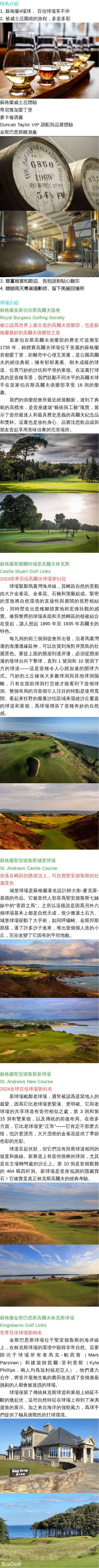 金斯巴恩斯高爾夫Kingsbarns Golf Links 聖安德魯斯城堡球場St. Andrews Castle Course/聖安德魯斯新球場St. Andrews New Course 皇家伯吉斯高爾夫協會Royal Burgess Golfing Society 斯圖爾特城堡高爾夫林克斯Castle Stuart Golf Links