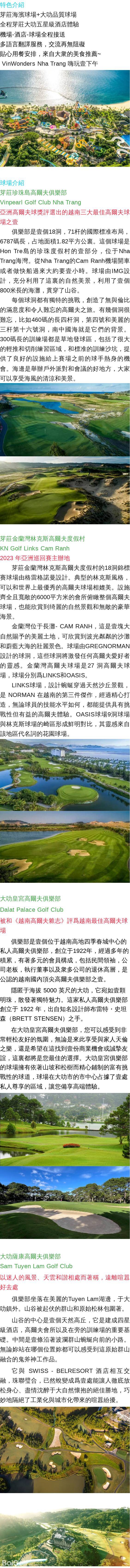 芽莊金蘭灣林克斯高爾夫度假村、大叻薩康高爾夫俱樂部、芽莊珍珠島高爾夫俱樂部、大叻皇宮高爾夫俱樂部
