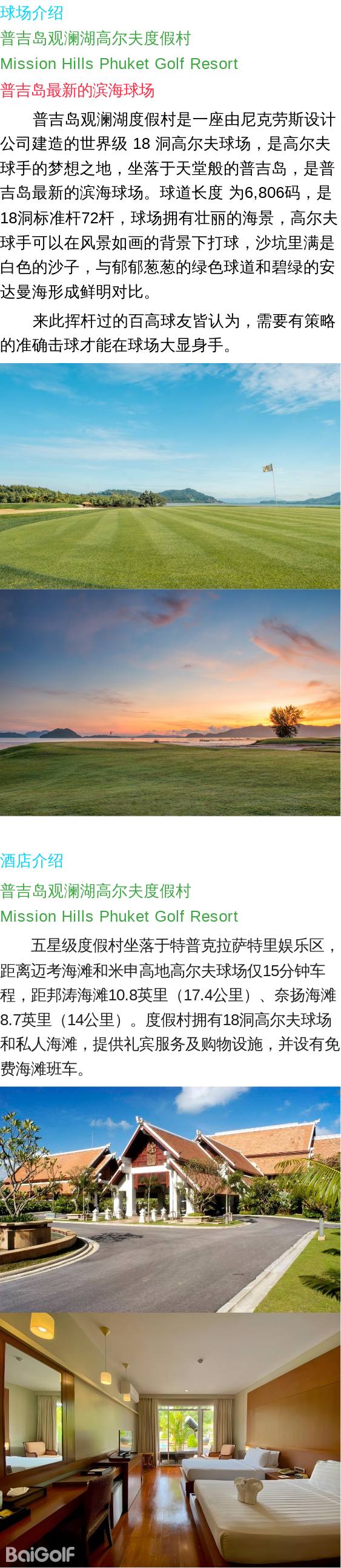 普吉岛观澜湖Mission Hills1晚1球【入住球会酒店】