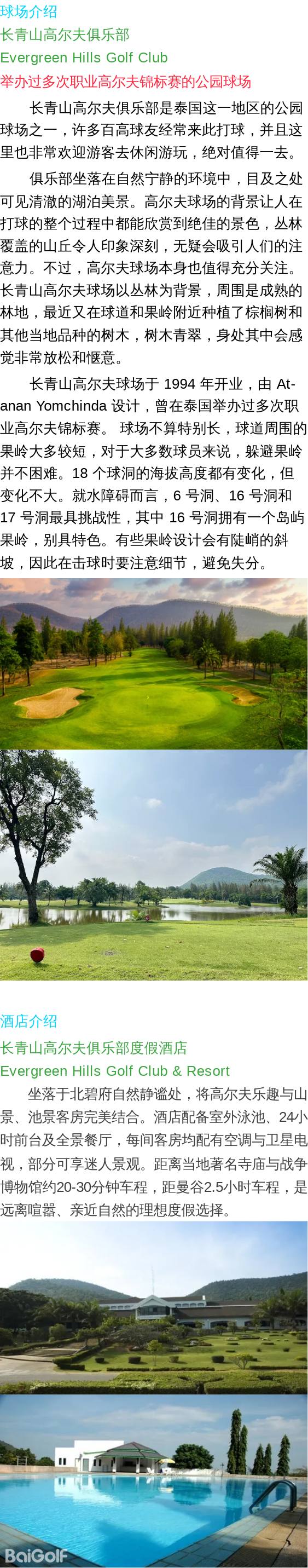 长青山Evergreen Hills1晚1球【入住球会酒店】
