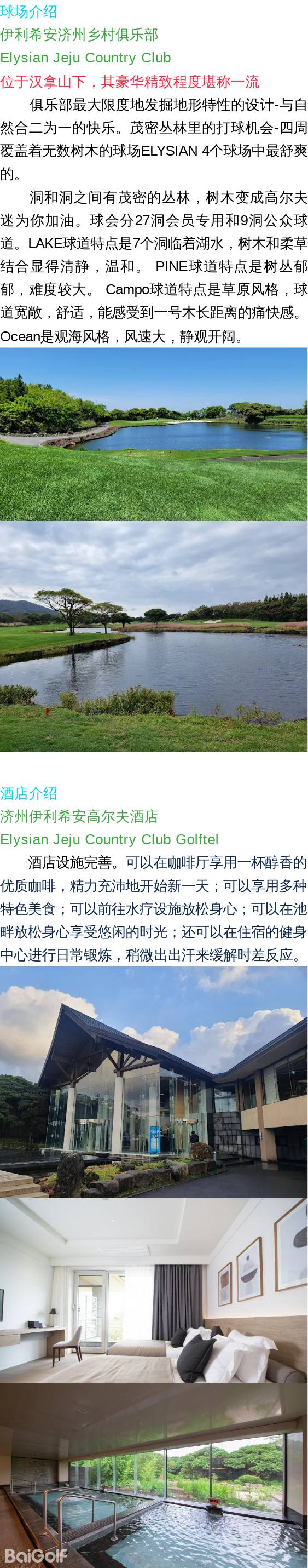 伊利希安Elysian1晚2球【入住Elysian Jeju Country Club Golftel】球会酒店系列