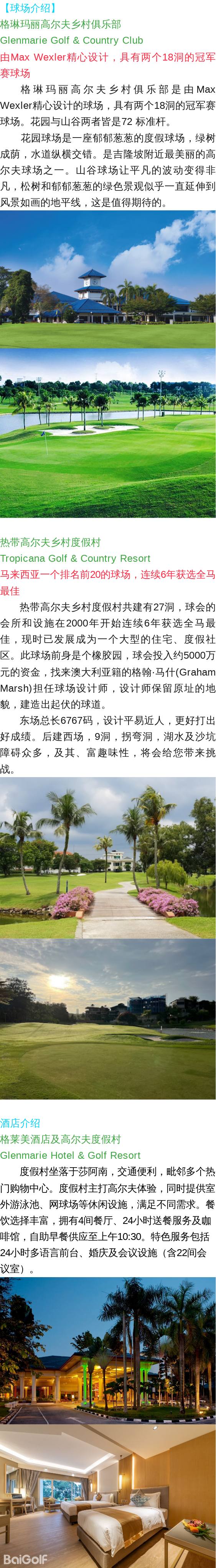格琳玛丽Glenmarie+热带Tropicana 1晚2球【入住球会酒店】
