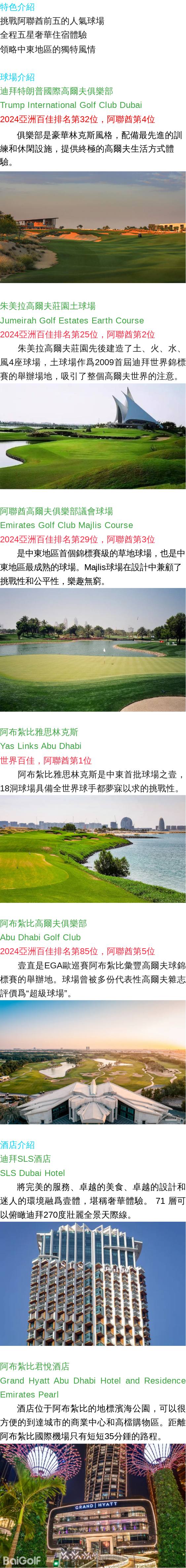 阿布紮比高爾夫俱樂部,阿布紮比雅思林克斯,阿聯酋高爾夫俱樂部議會球場,朱美拉高爾夫莊園土球場,迪拜特朗普國際高爾夫俱樂部
