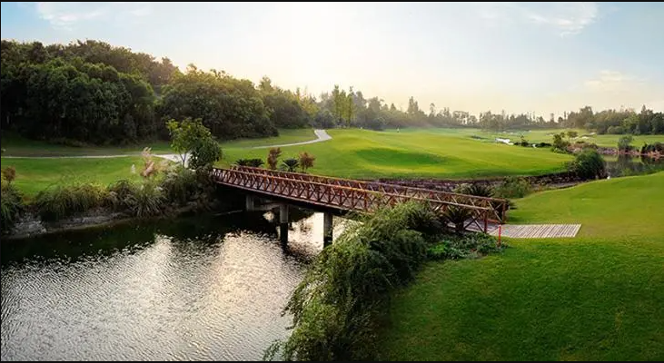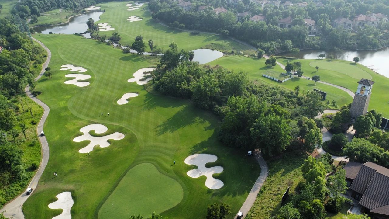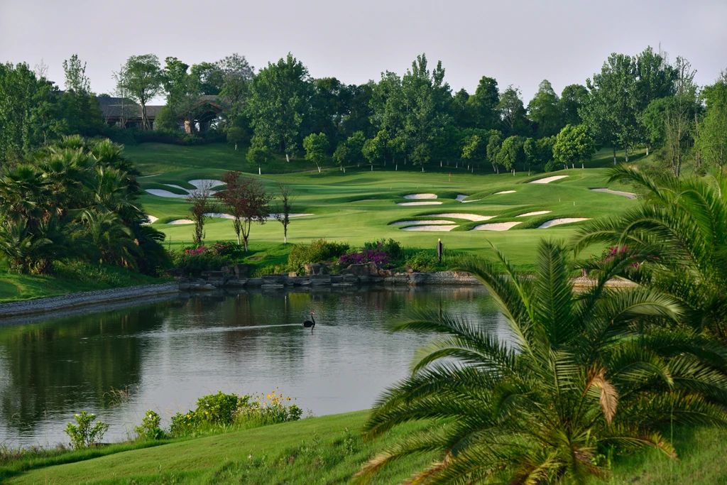 地处山水之城四川成都金堂县——蓝光·观岭球会,美国专业高尔夫设计公司JMP集团充分利用了原生态地形坡地、台地的起伏变化,精心筑造出了这座18洞标准72杆国际锦标赛级的高尔夫球场。球道占地1200亩,全场7224码,以森林溪谷为基础,巧妙地将草地、湖泊、沙地和树木等自然景观融合在一起。